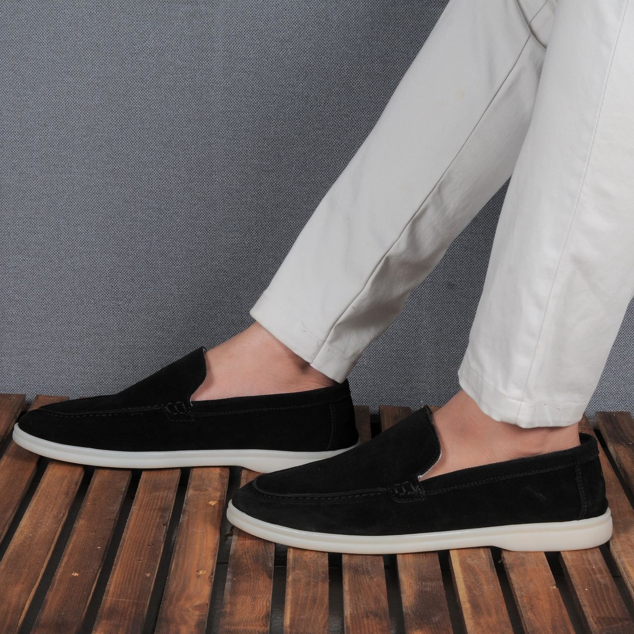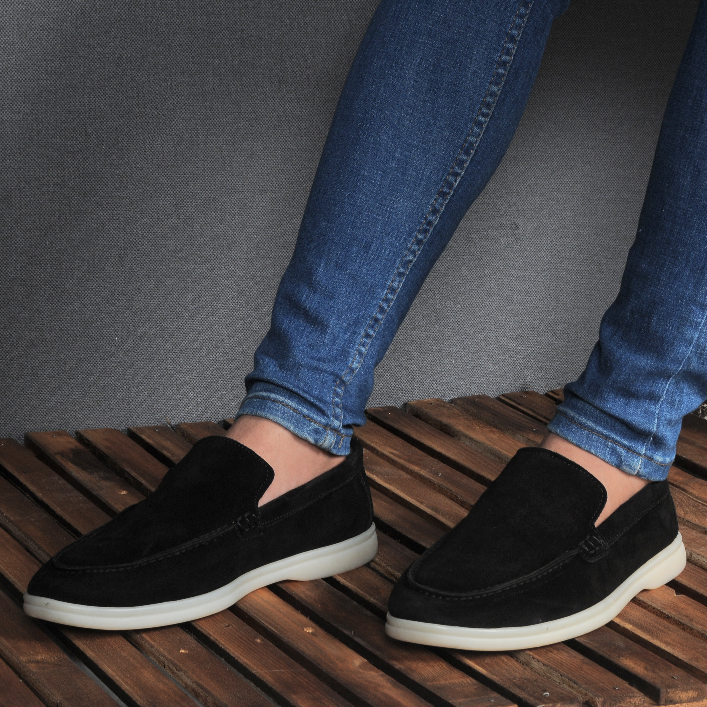 Black suide loofers